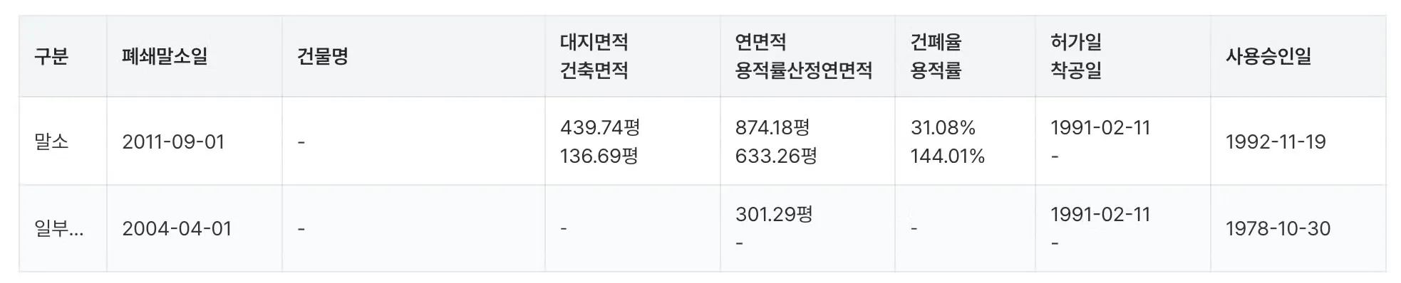 건물의 지번 주소와 일치하는 정보가 제공되고 있어서, 해당 주소의 과거 건물에 대한 건축인허가 정보가 포함될 수 있습니다.