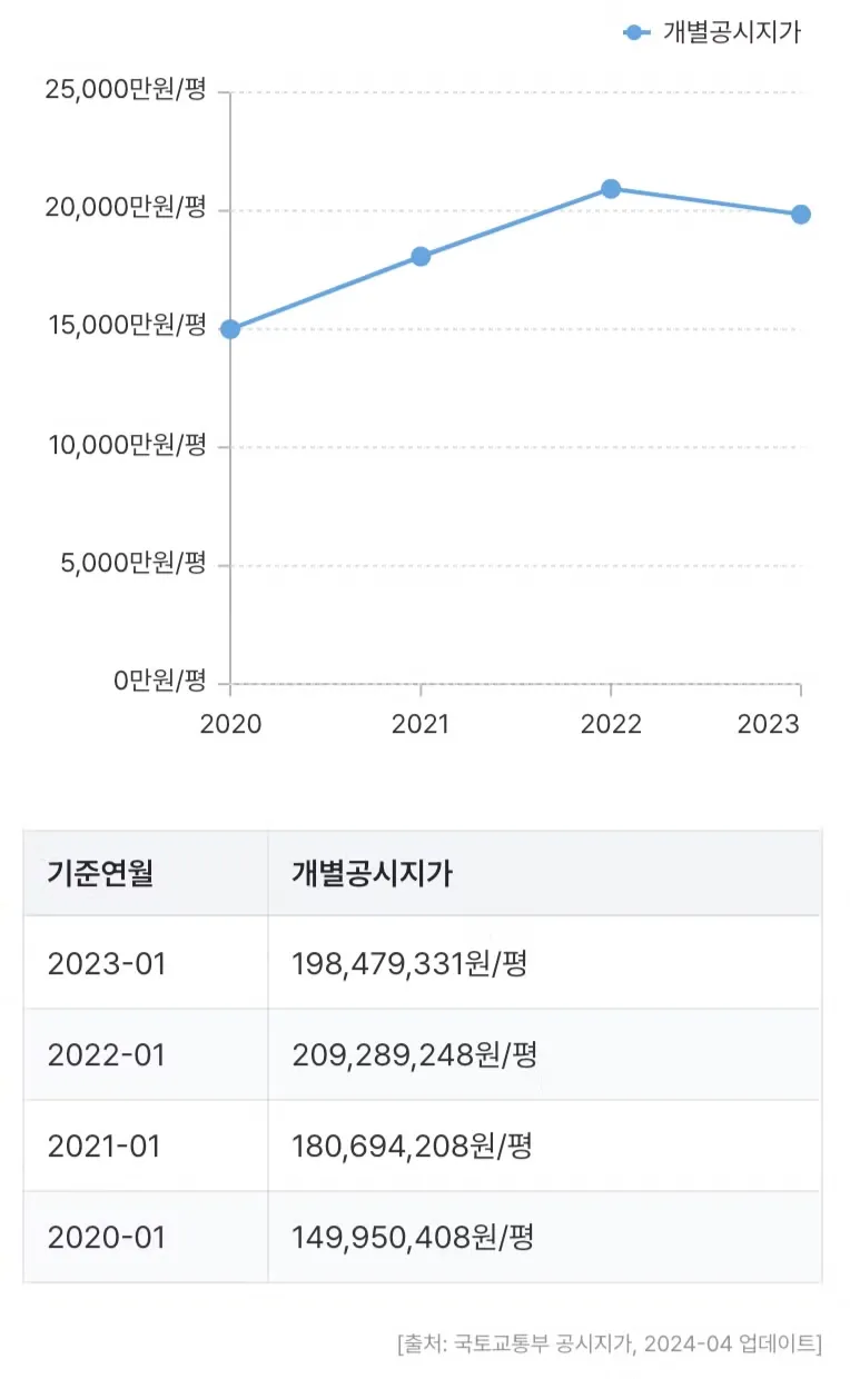 최근에 구획된 필지 경우 과거의 개별공시지가 정보가 없을 수 있습니다.