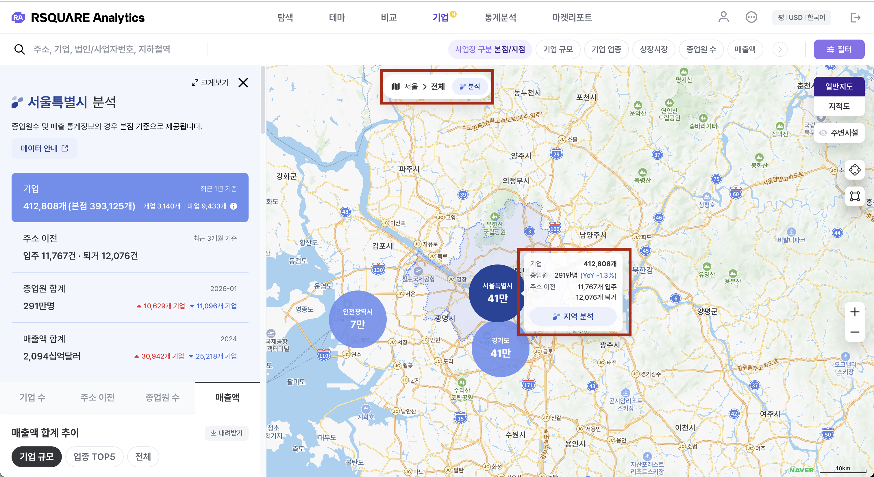 (종업원과 매출은 기업 본점만 대상으로 통계를 제공합니다)