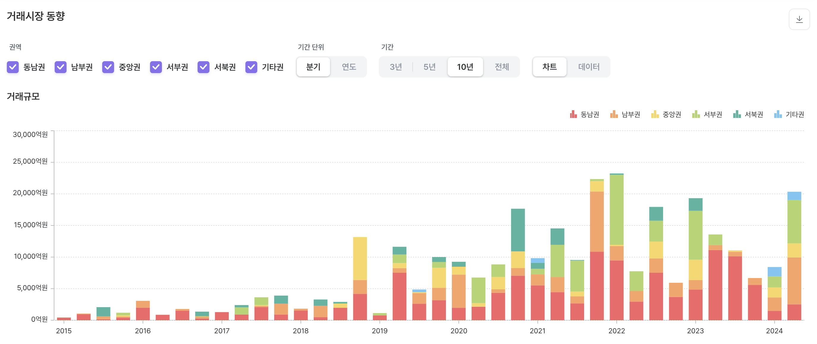 알스퀘어 조사 거래 사례 기반으로 통계치 및 거래사례 제공