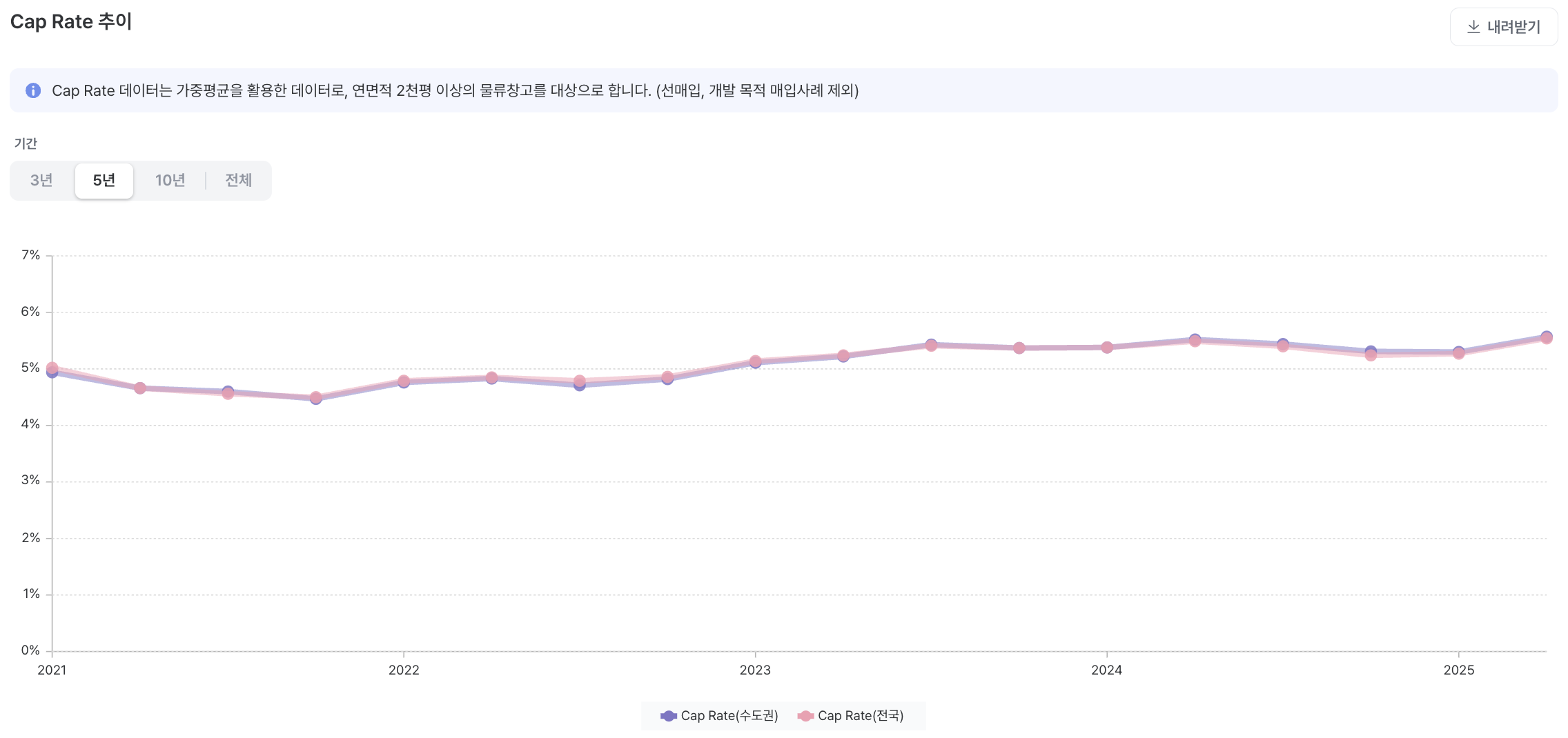 부동산 가치 대비 순 영업이익에 대한 비율로, Initial Cap 기준입니다.