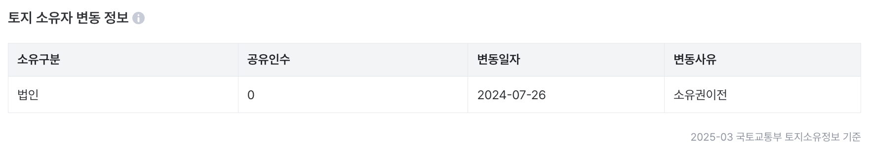 토지 소유자 변동 정보