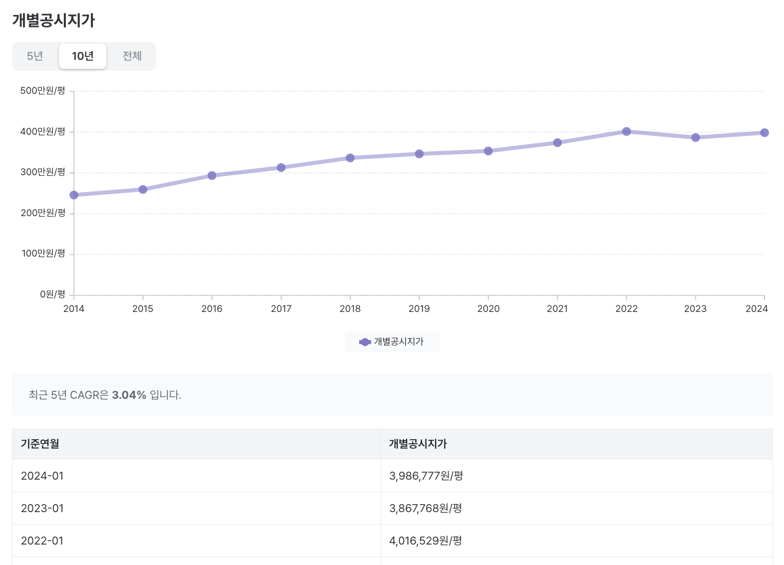 최근에 구획된 필지 경우 과거의 개별공시지가 정보가 없을 수 있습니다.
