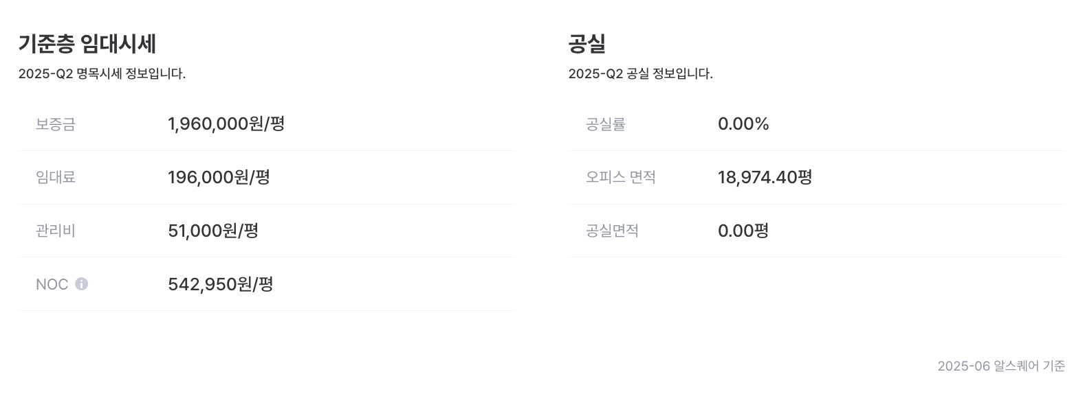 기준층 임대시세 및 공실