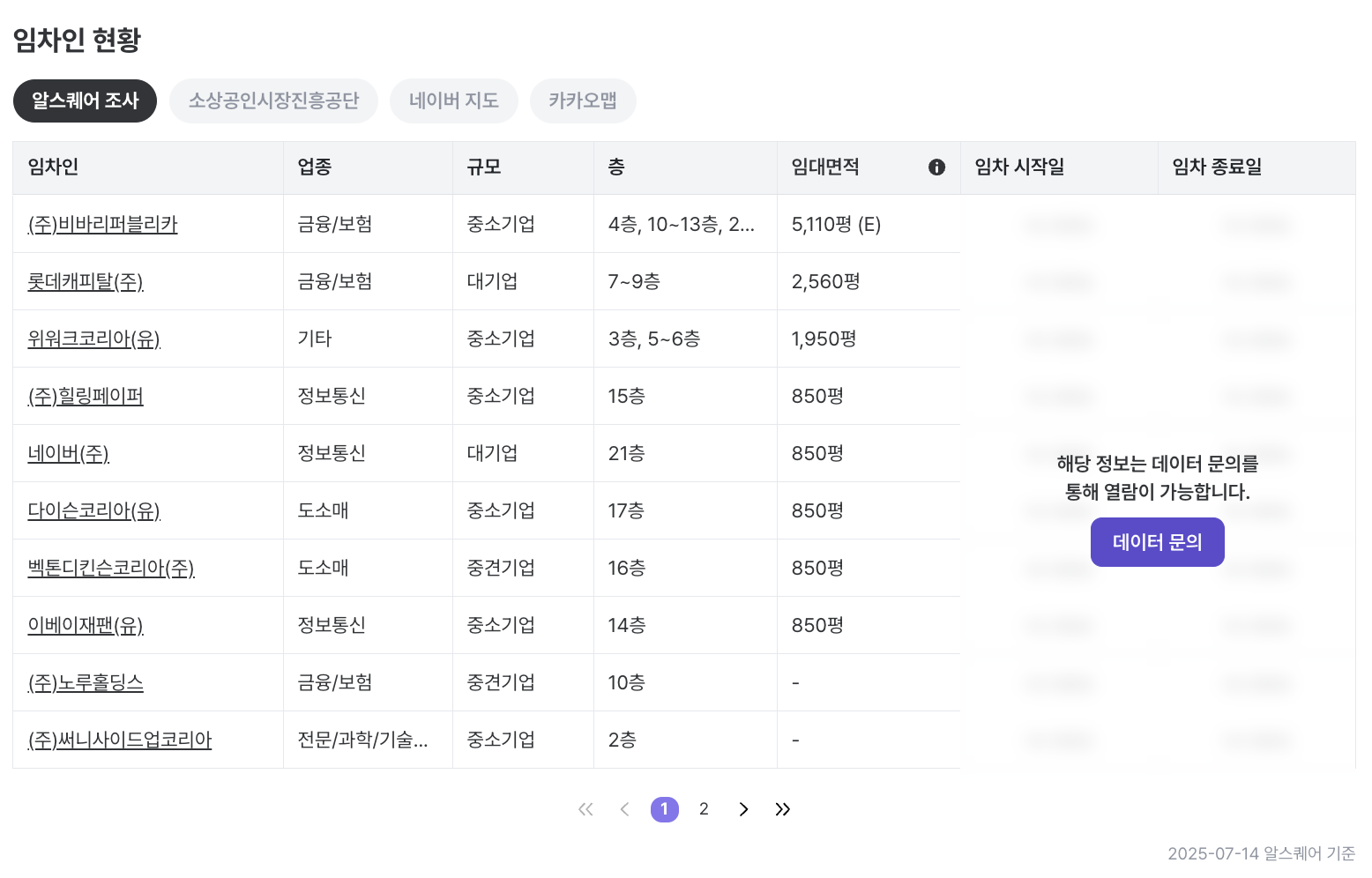 임차인 : 오피스/물류창고 임차인 위주로 제공됩니다. (리테일은 제외)