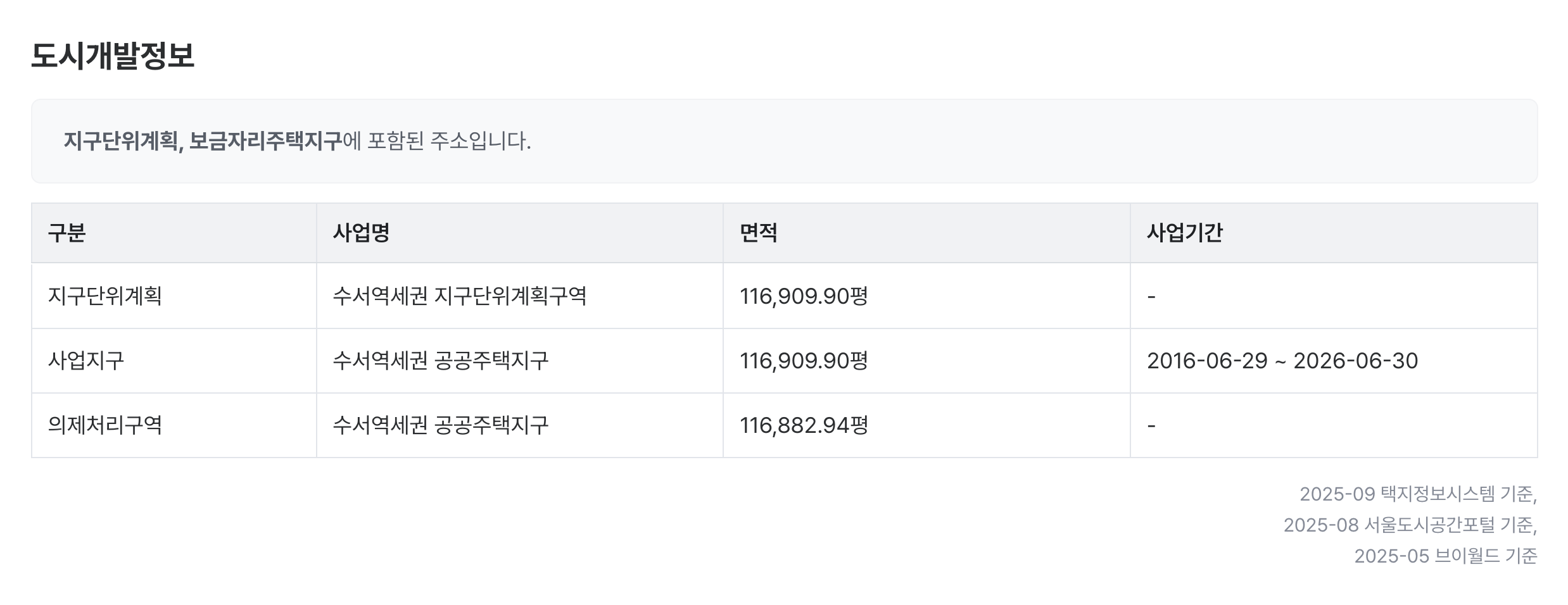 해당 토지/건물이 속한 도시개발정보를 확인하실 수 있습니다.