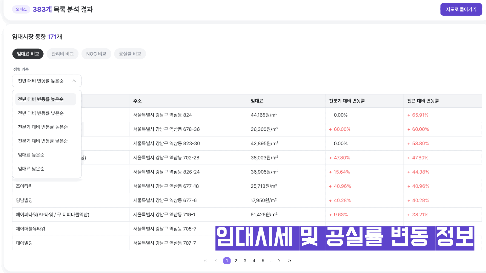 건물 임대시세, 공실률, 임차인 변동 정보