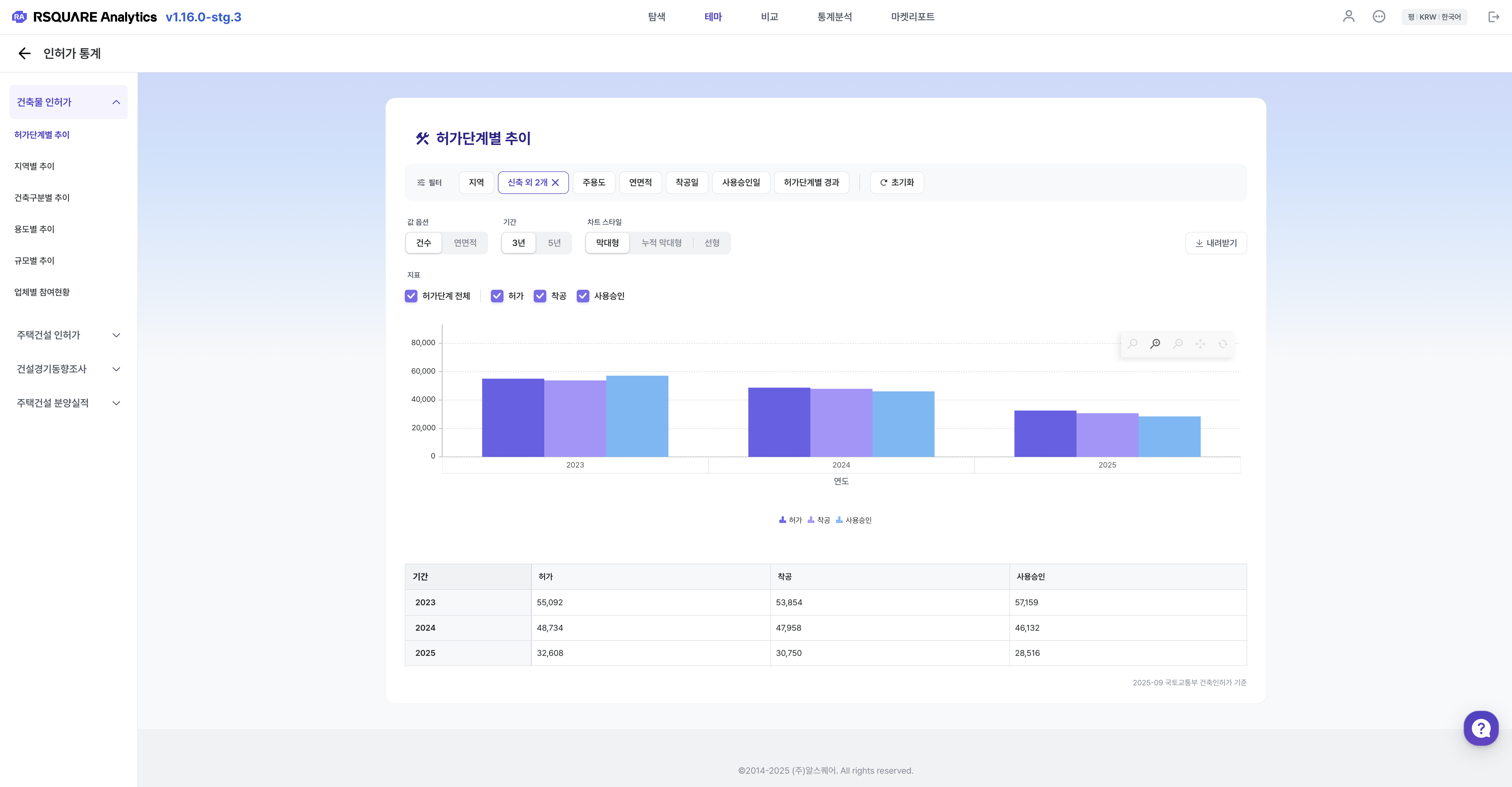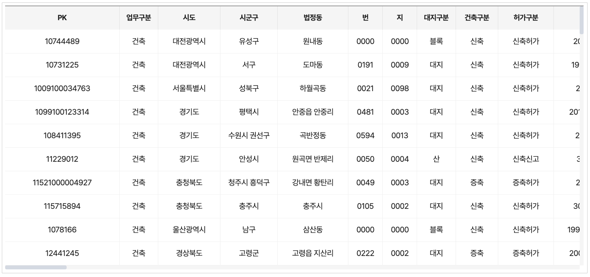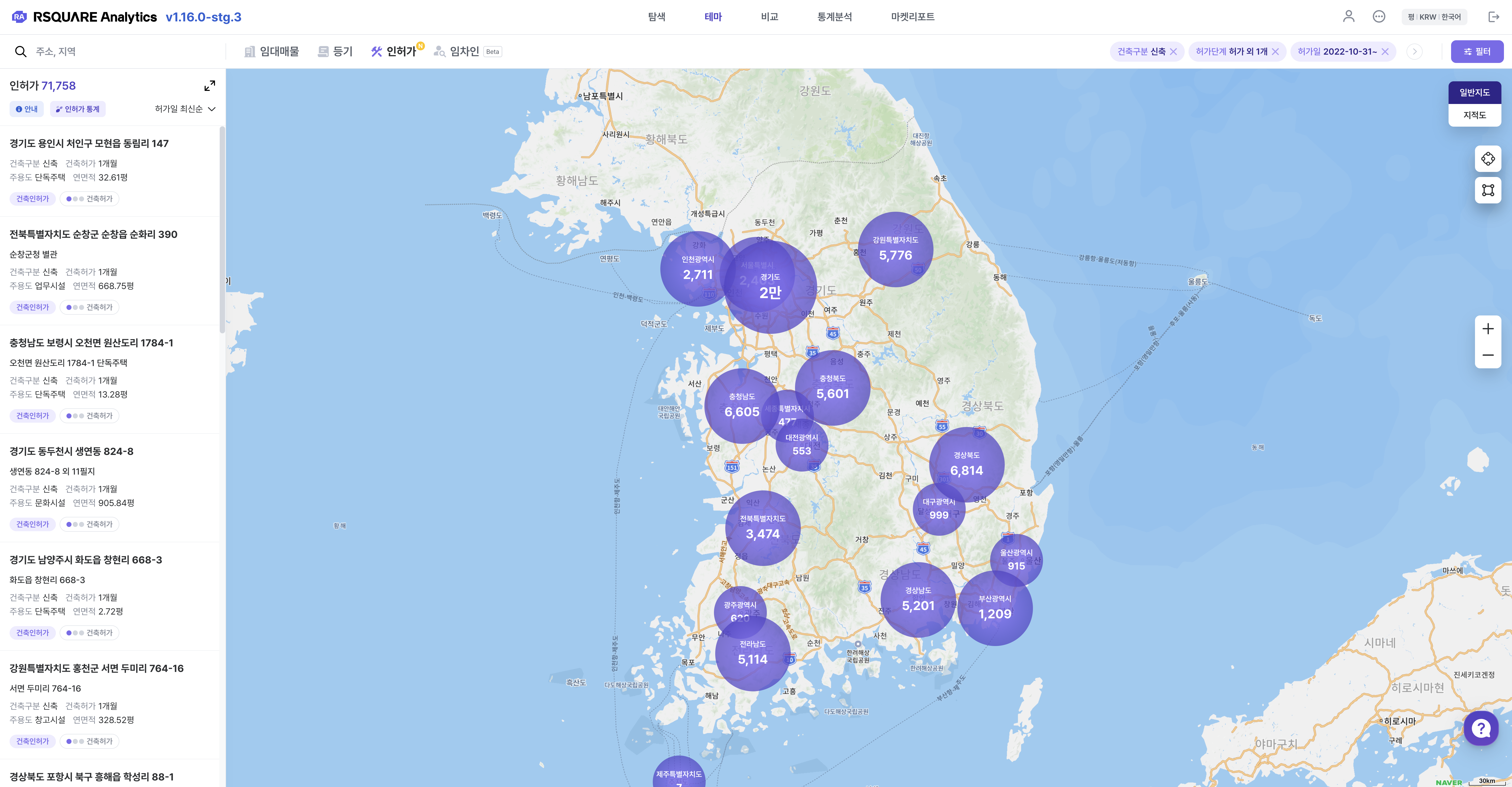 전국의 시도별 인허가 건수를 확인할 수 있습니다.