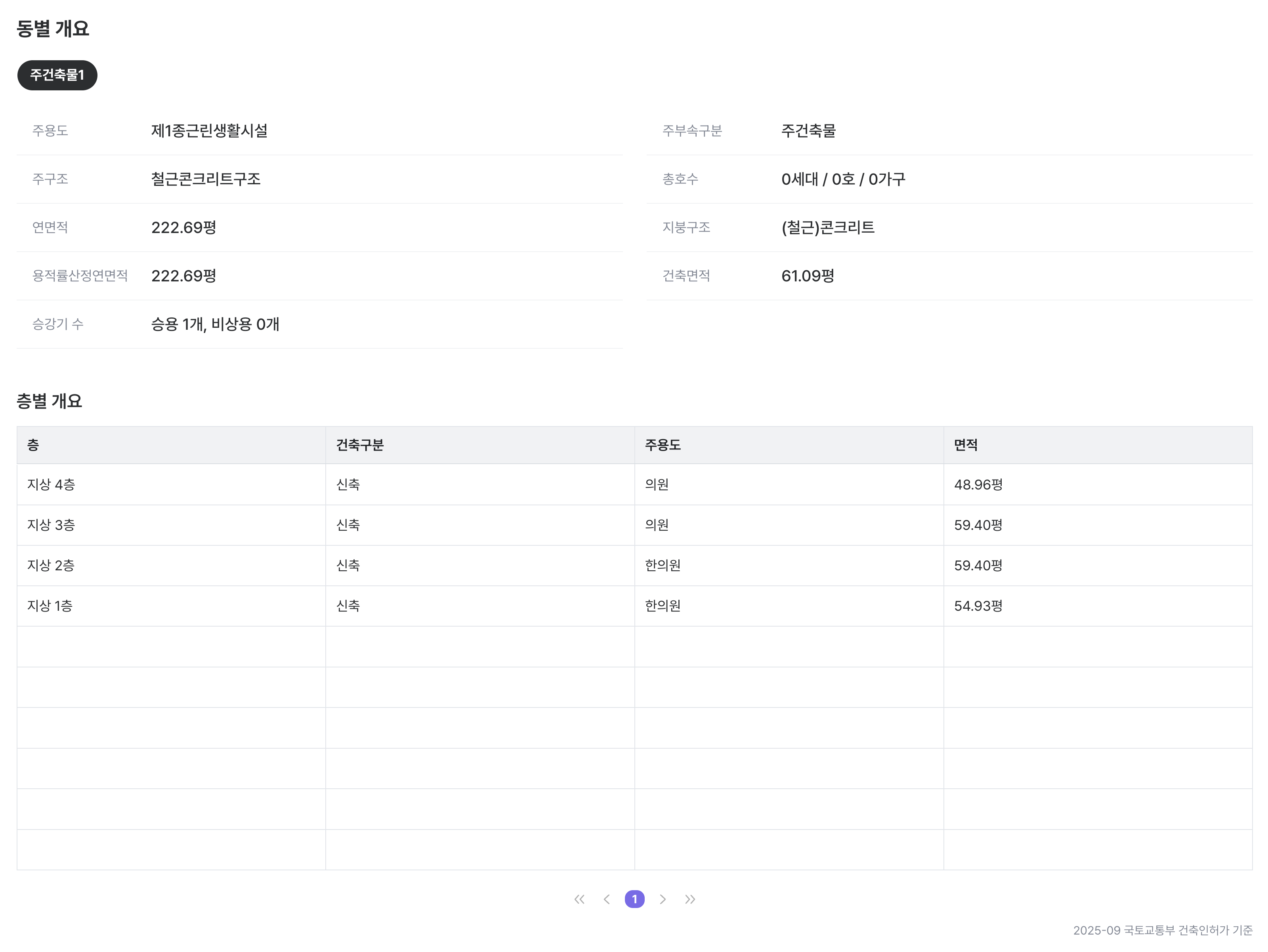 해당 인허가의 동별, 층별 정보를 확인할 수 있습니다.