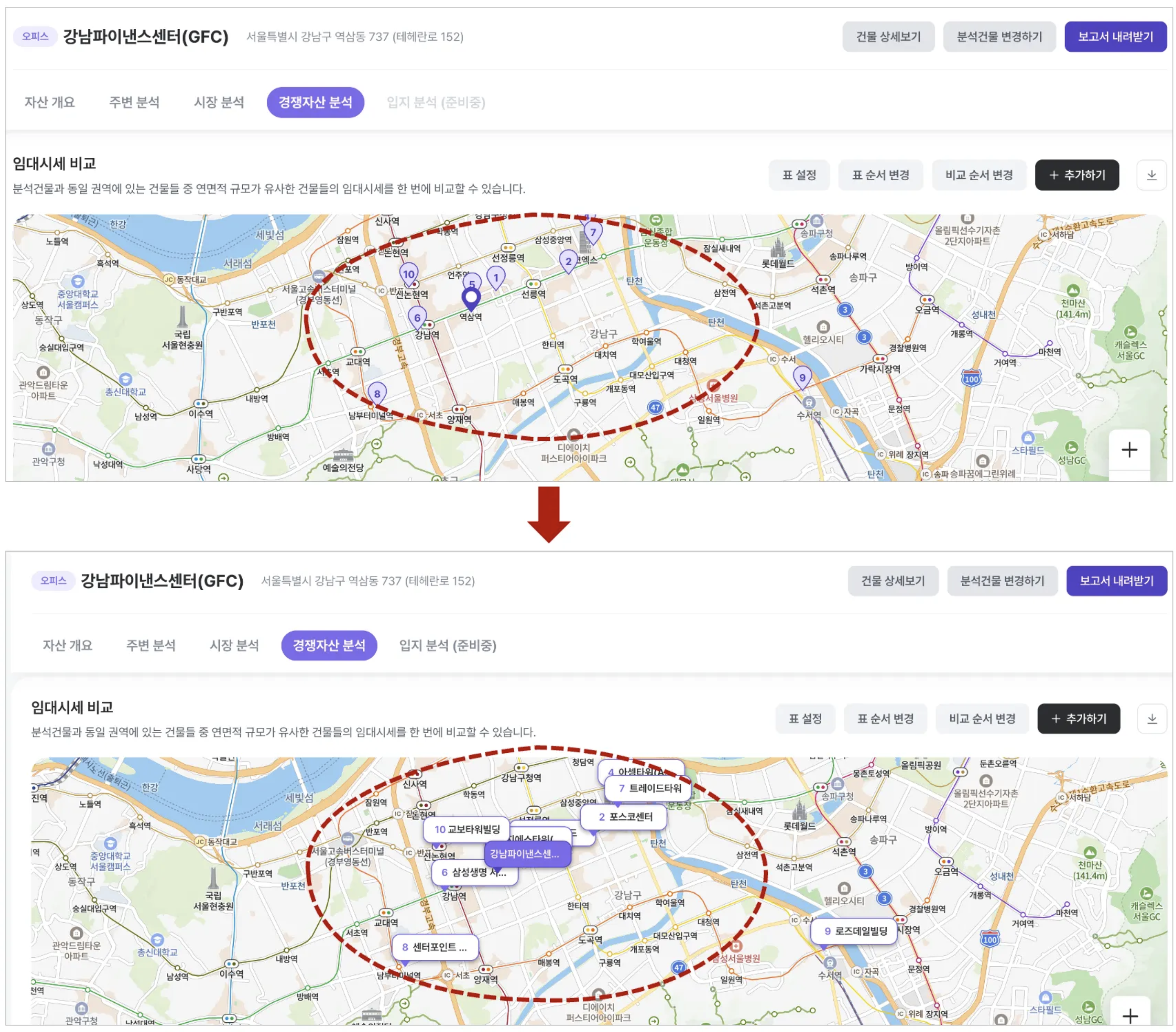 기존에는 지도에 “숫자”만 표시했는데, “숫자”와 “건물 이름”이 같이 표시되도록 개선했어요.
