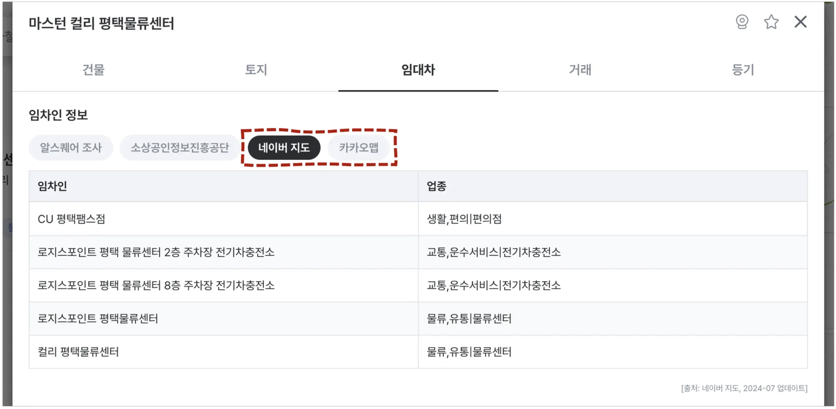RA에서는 알스퀘어에서 조사한 임차인 외에 ‘소상공인정보진흥공단, 네이버 지도, 카카오맵’에서 수집한 임차인(업체) 정보도 제공하는데요. 네이버 지도와 카카오맵 경우, 기존에는 알스퀘어 건물에서만 그 정보를 제공했어요.