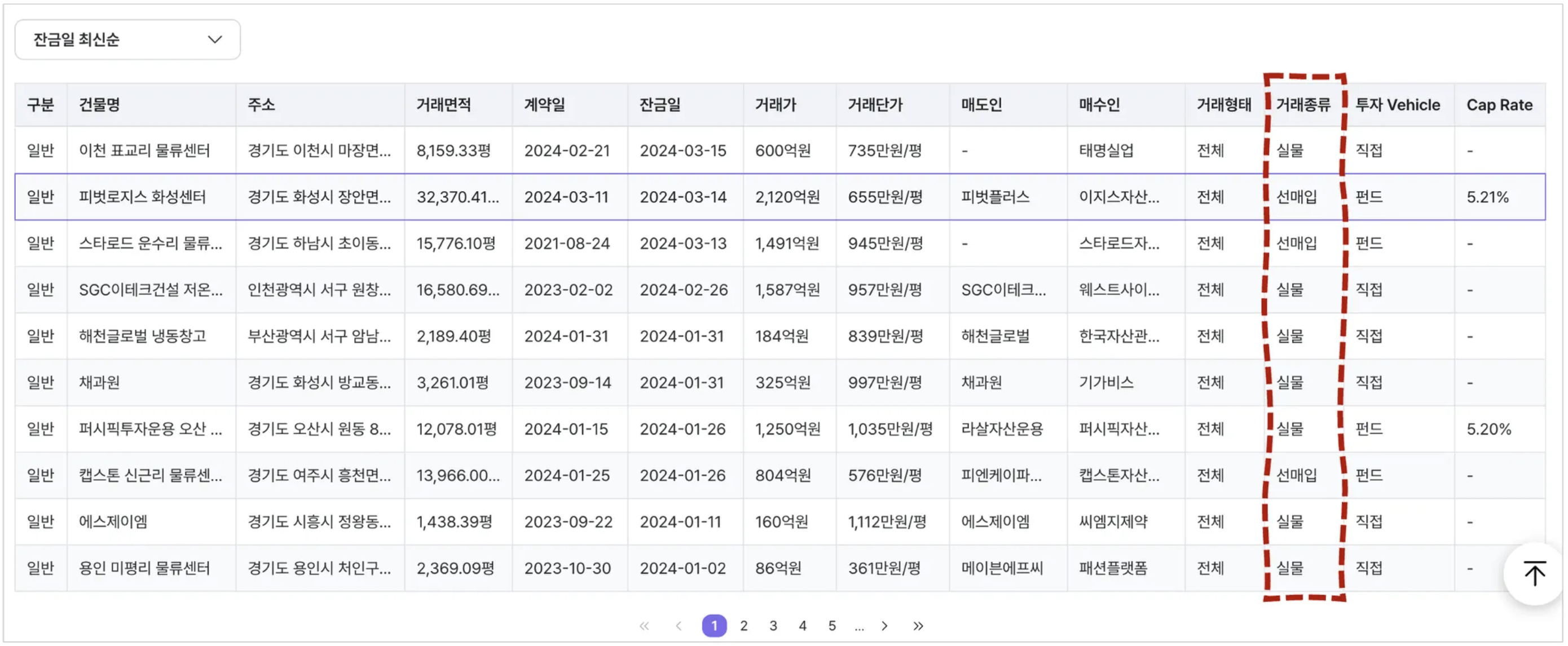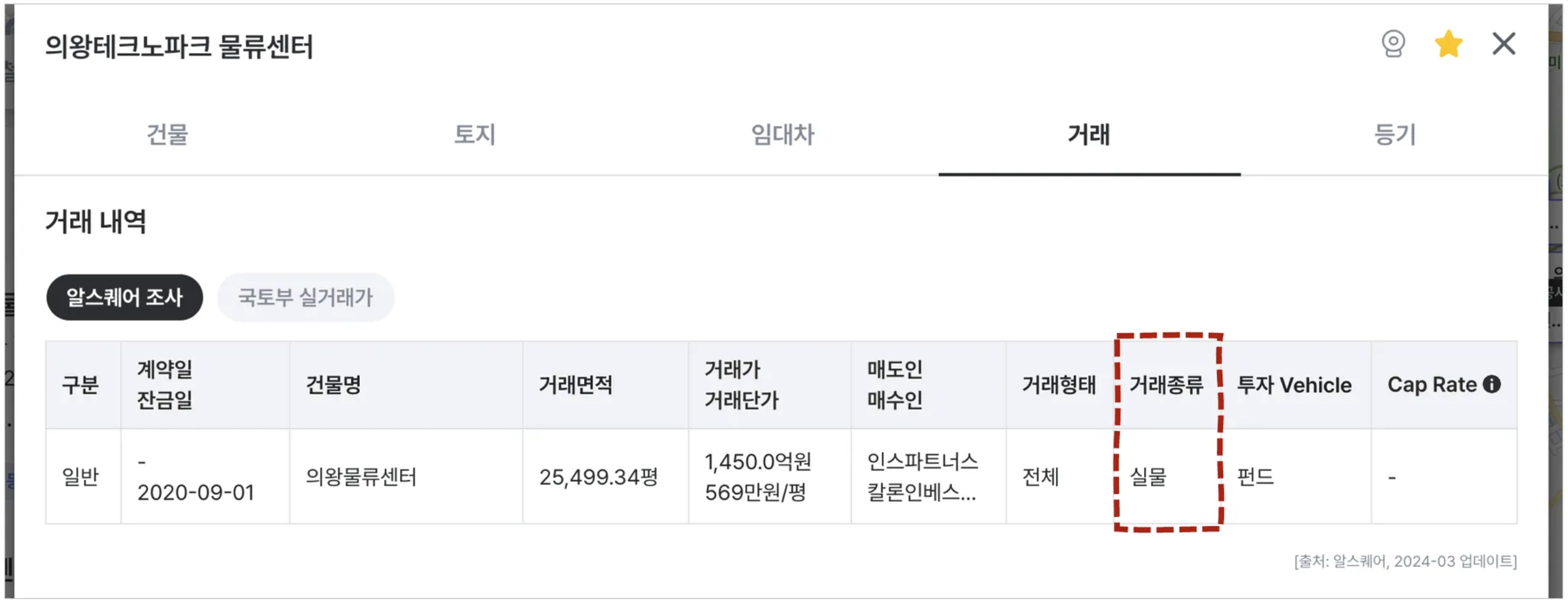알스퀘어에서 조사한 거래 내역에 “거래 종류(실물/선매입/수익증권/경매)” 정보를 추가했어요.