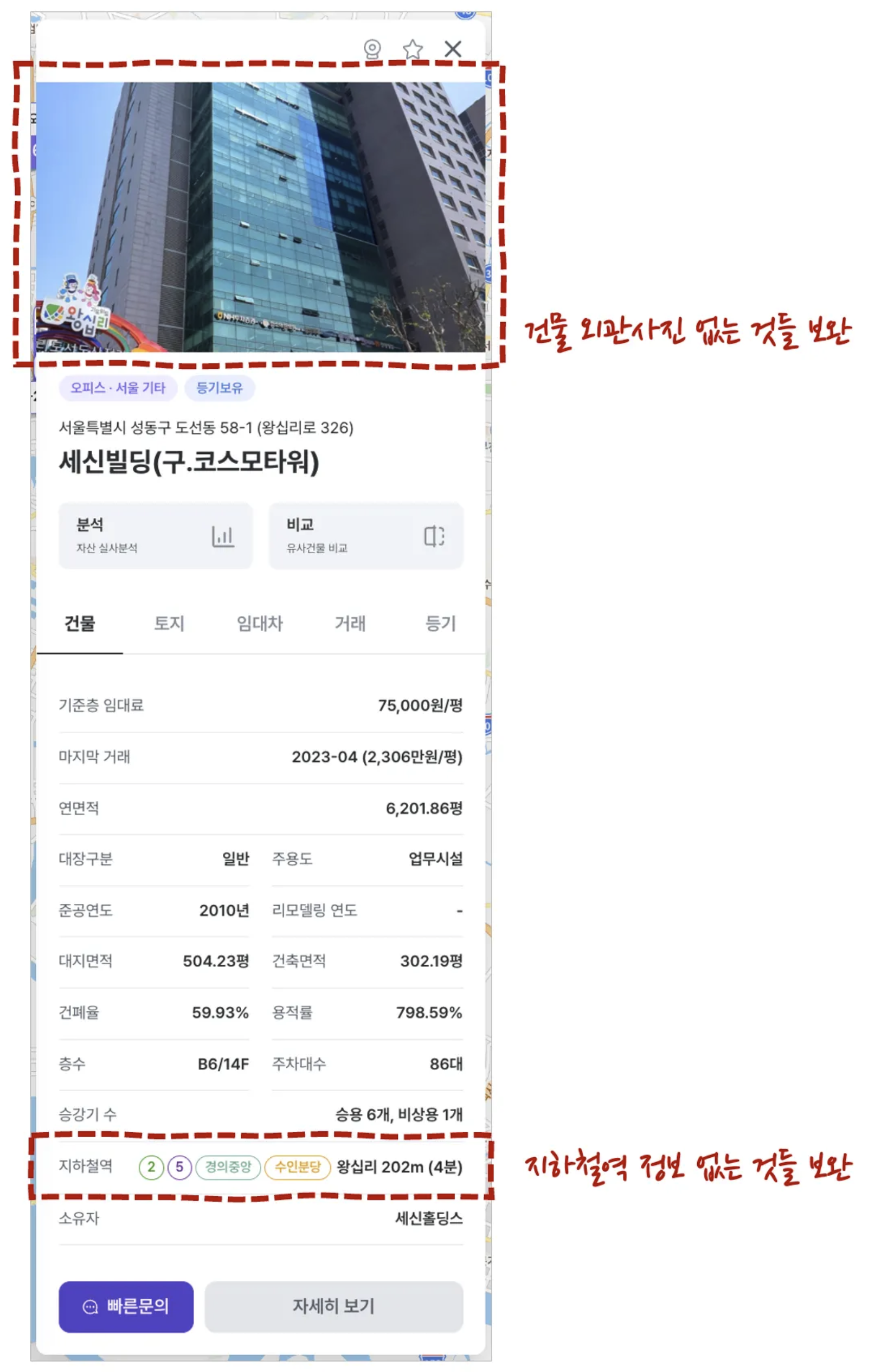 알스퀘어 조사 건물들의 건물명, 소유자 등 정보 전반을 검토하며 보완 중이에요. 다음 번 업데이트 때 보완 결과를 다시 한 번 소개해드릴게요.
