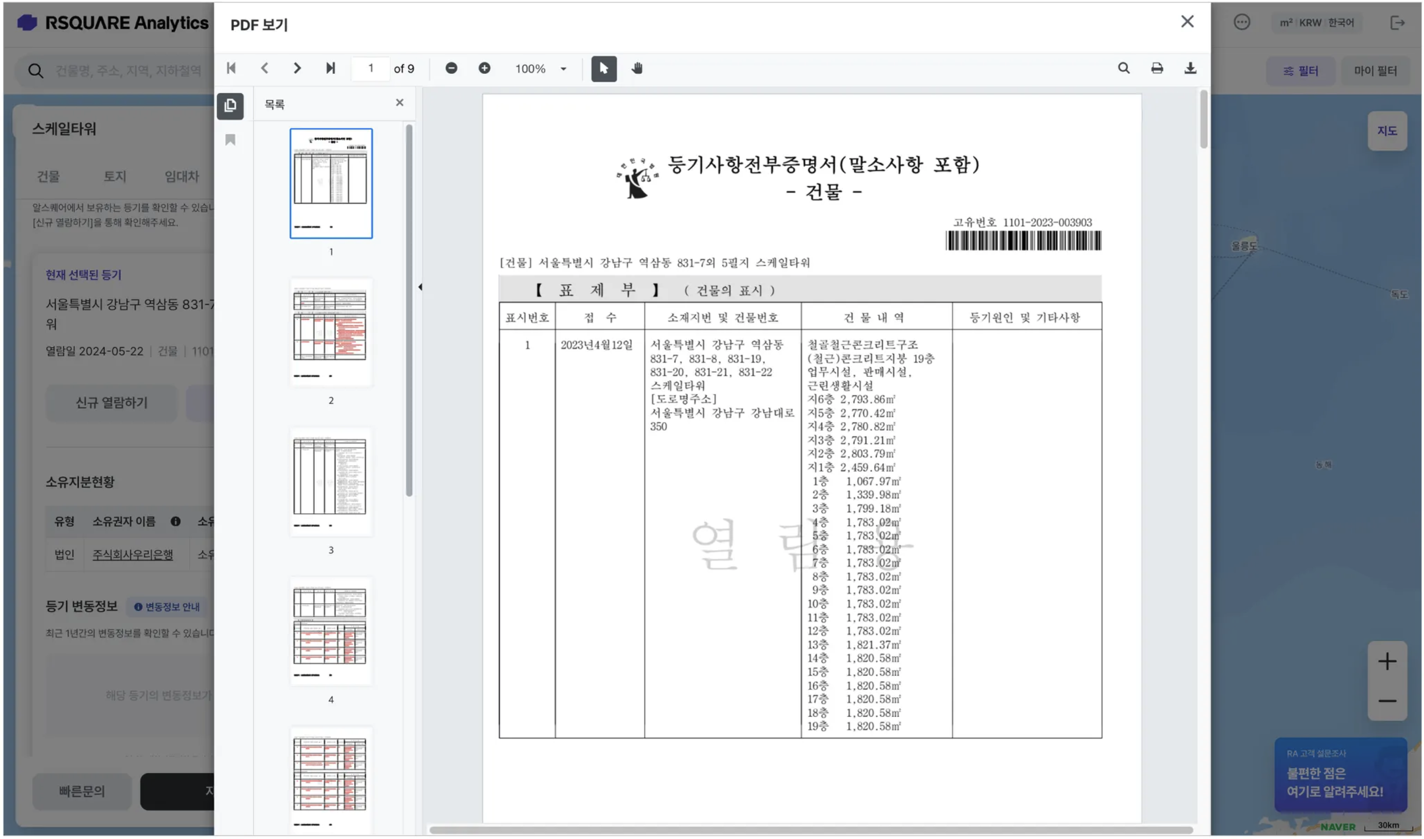 “알스퀘어 조사 대상 오피스, 물류창고 건물 등기”를 비롯해 “수도권 지역 상업용 건물 등기”를 제공합니다.