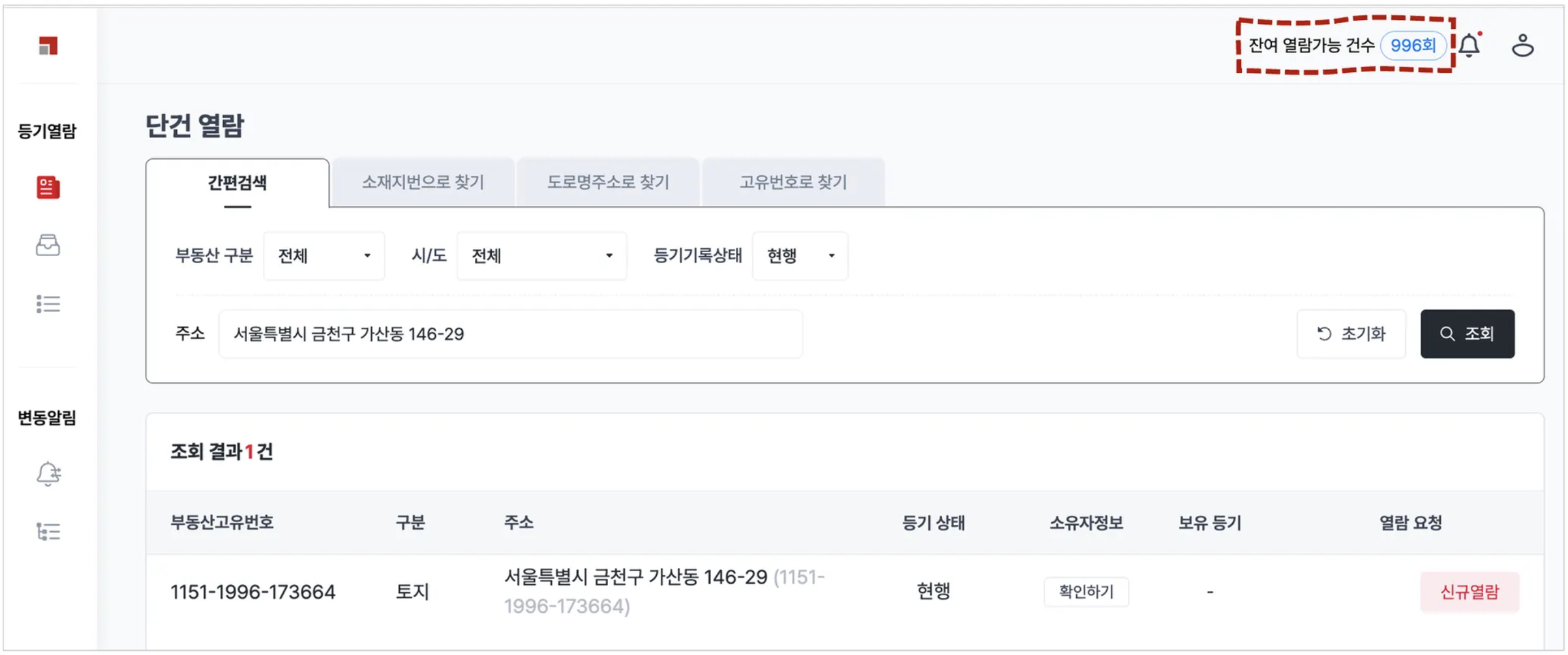 RA 구독 계약 시 일정 수량의 무료 등기열람권이 제공돼요.