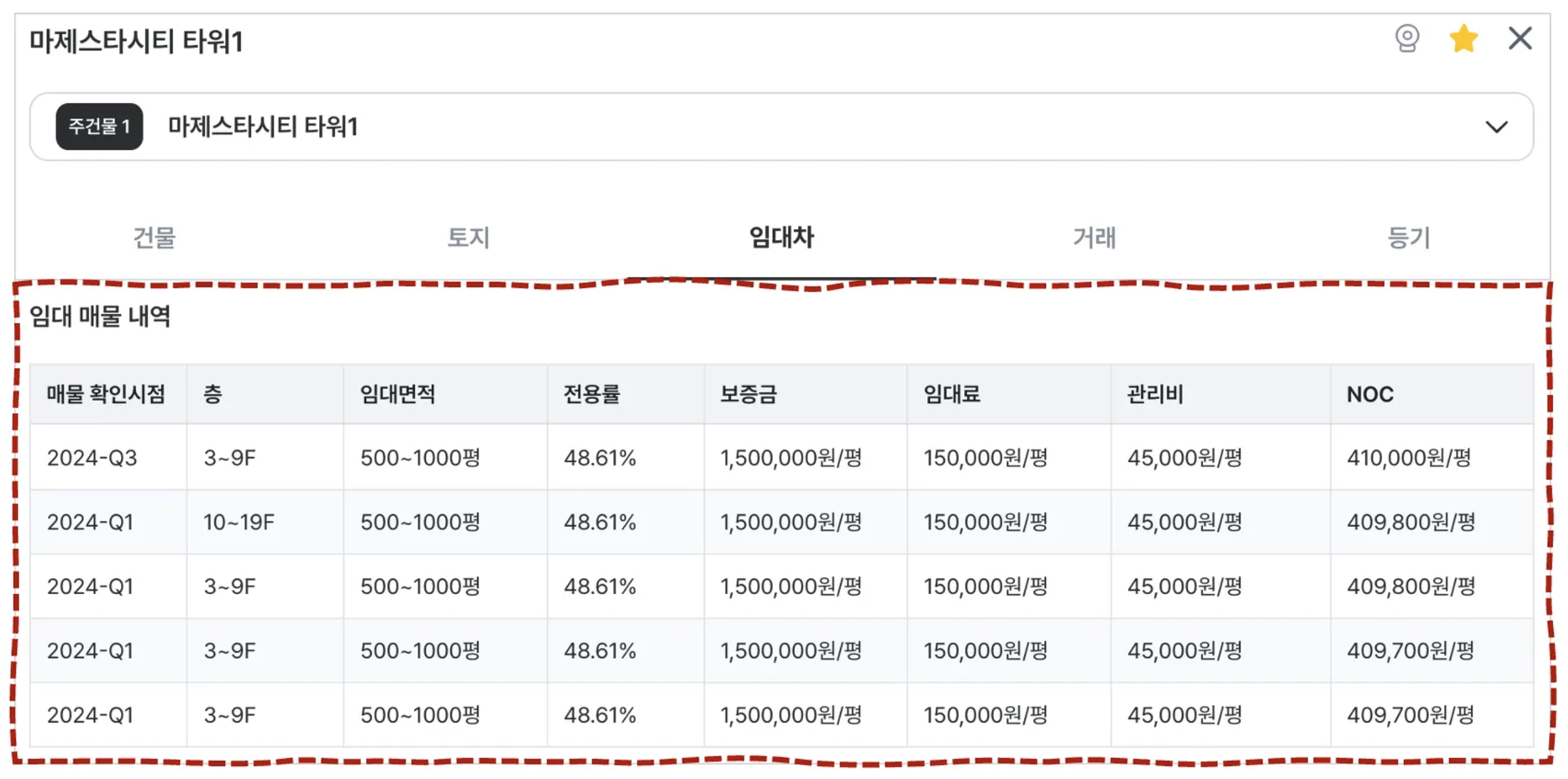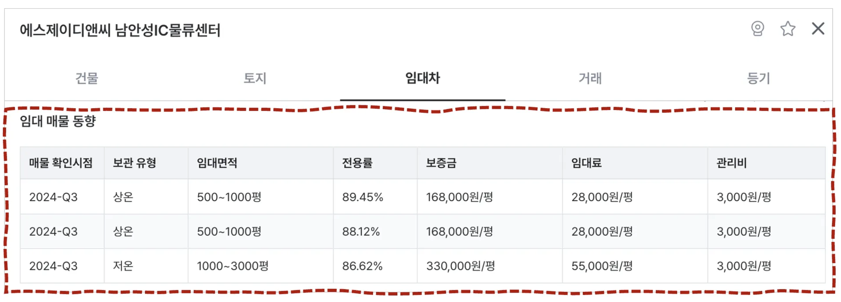 오피스, 물류창고 상세 화면에 알스퀘어에서 조사한 임대 매물 정보를 추가 제공해요.