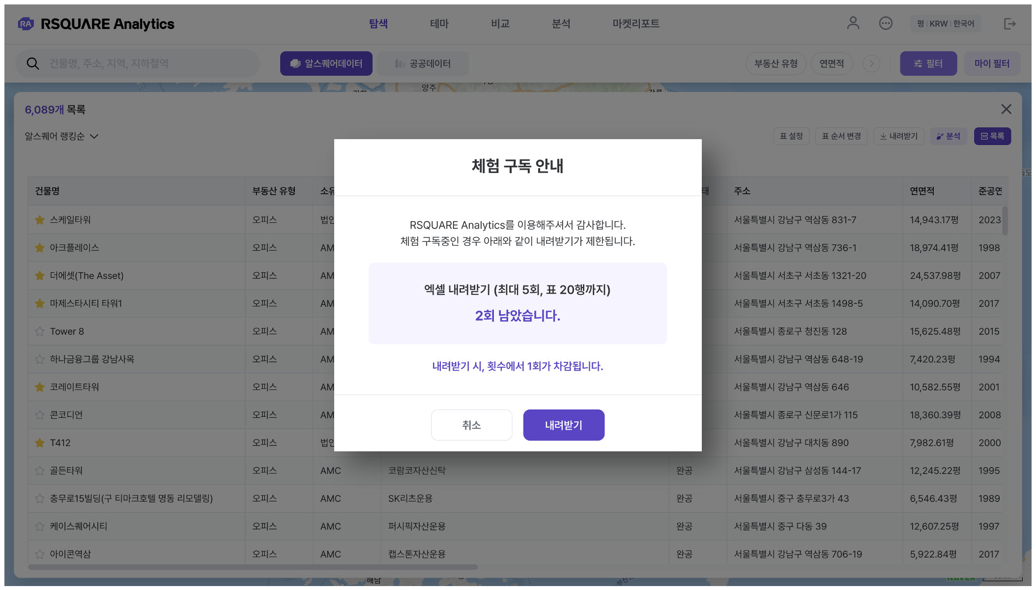 추가로 이용이 필요한 경우에는 고객센터(analytics@rsquare.co.kr)로 요청해주시면 검토 후 별도 제공 가능합니다. 🙂
