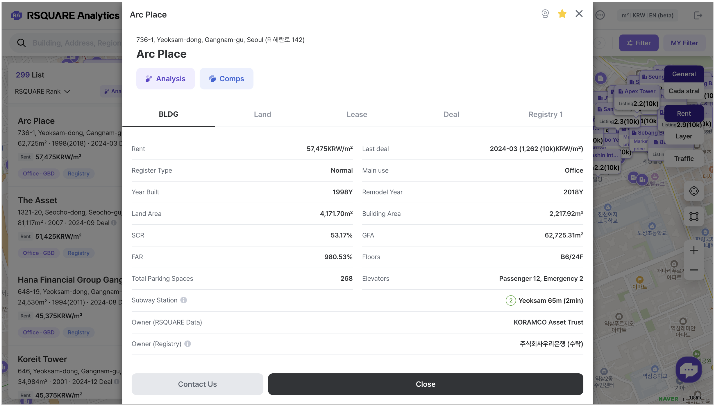 이번에도 소유권 변동이 추가로 발생한 90여개 부동산등기를 업데이트하여, 알스퀘어에서 조사하는 오피스/물류창고에 대해서는 최신의 소유권 정보를 확인할 수 있어요.