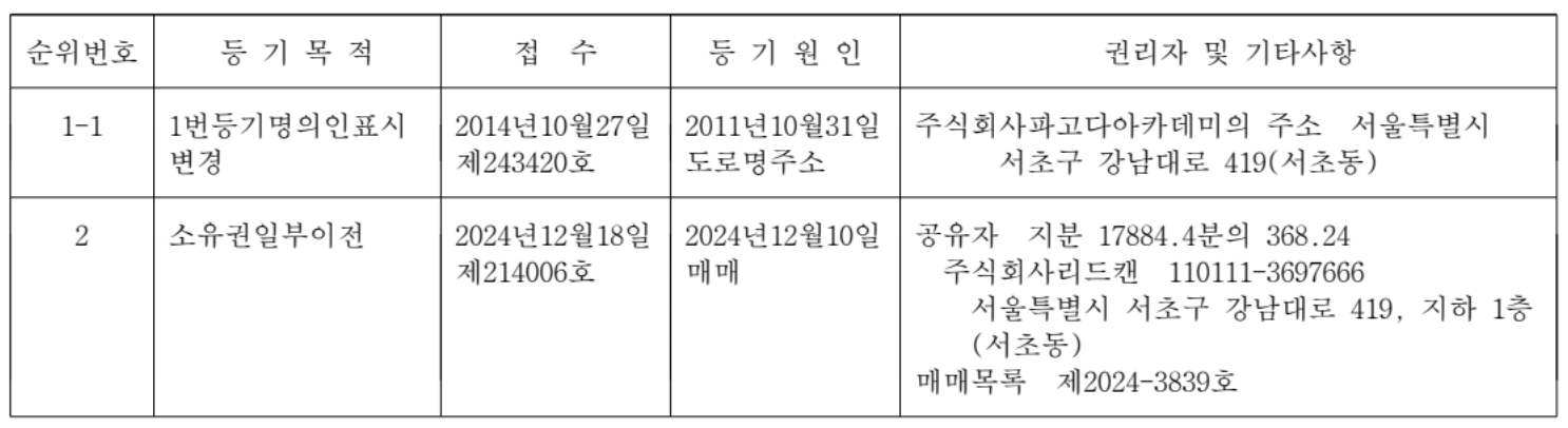 [오피스] 파고다타워 (서울시 서초구 서초동 1306-6) : 2024.12 소유권이전