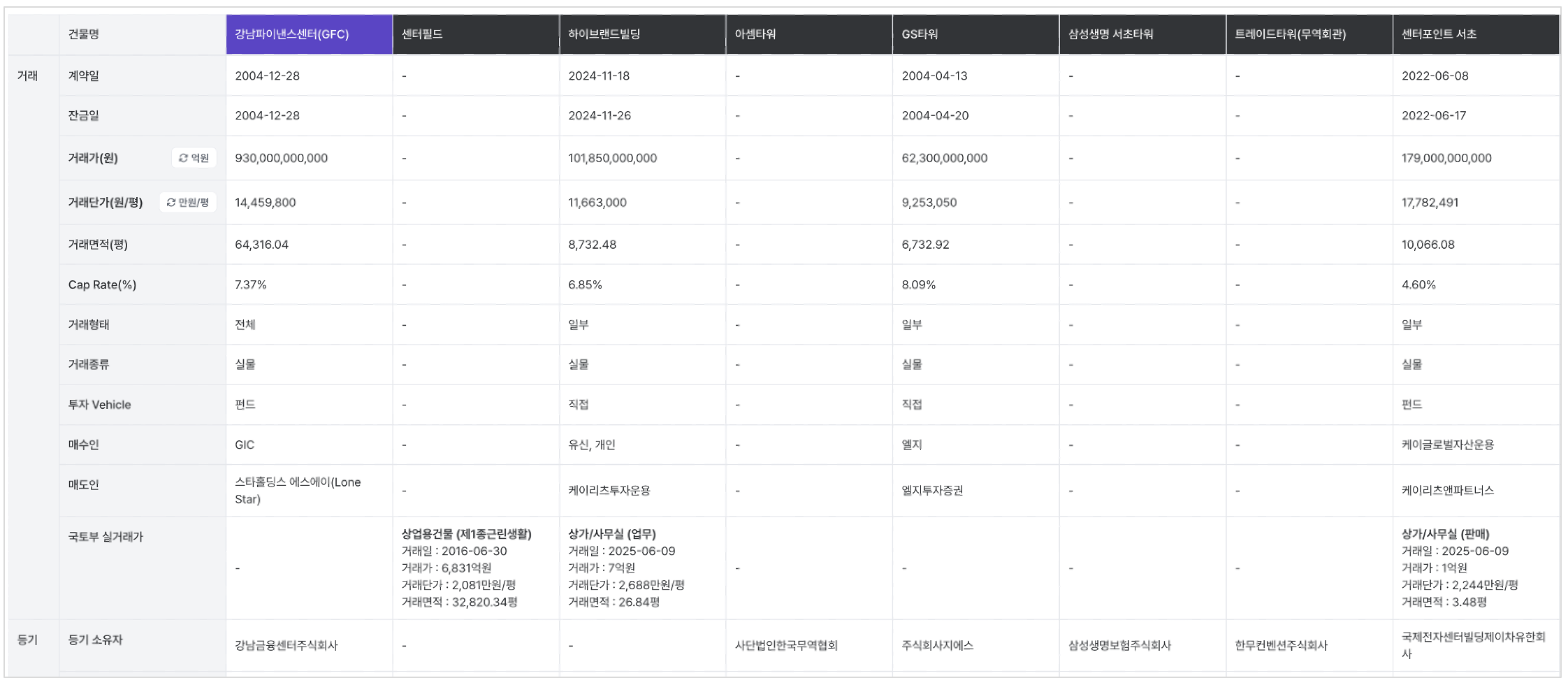 거래사례 비교표 : 국토부 실거래가, 등기 정보 추가