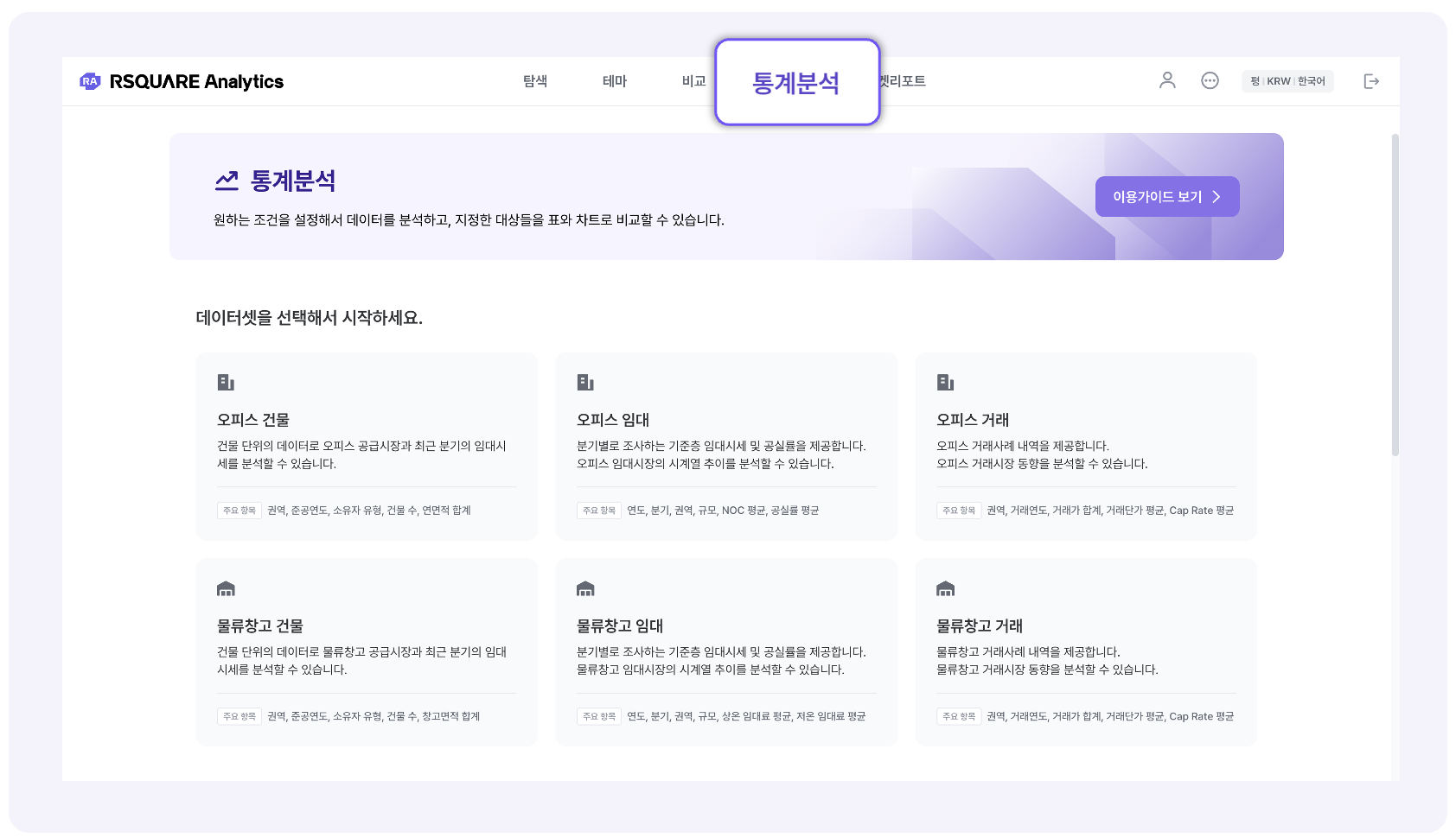 1. "통계분석" 메뉴 선택