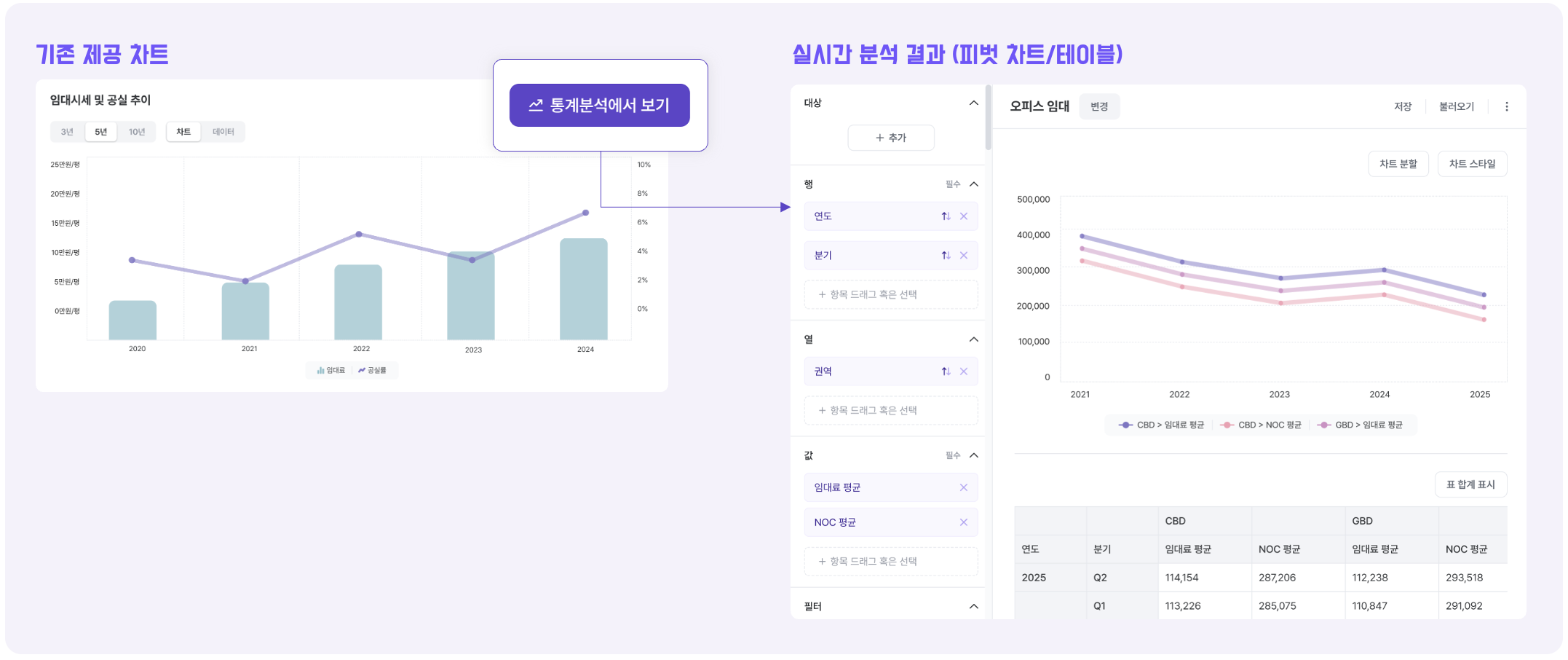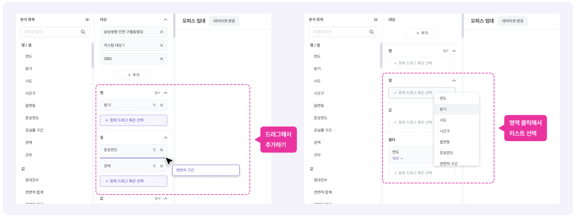 3. 엑셀처럼 직관적인 UI/UX를 통해 행·열·값·필터 설정