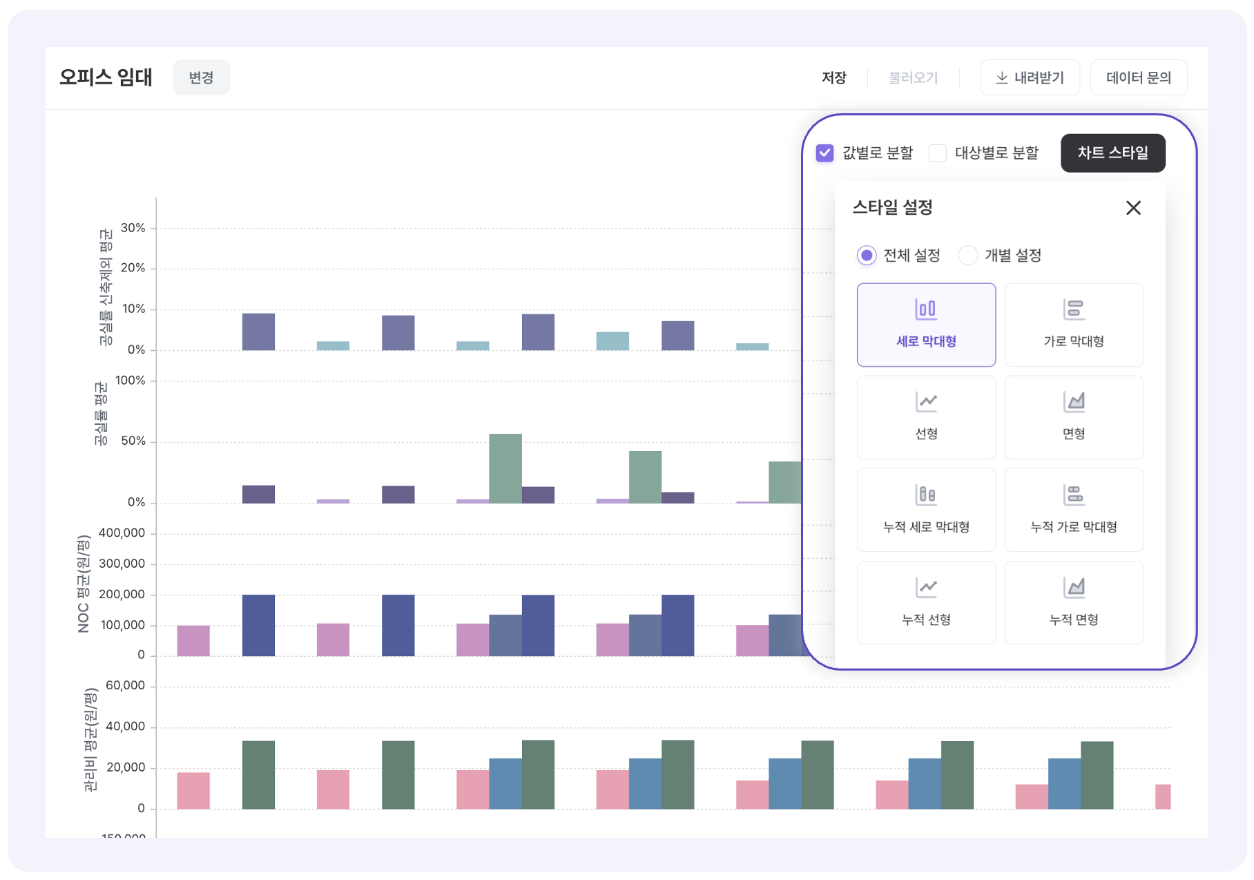 차트 스타일 : 차트 종류 변경 가능
