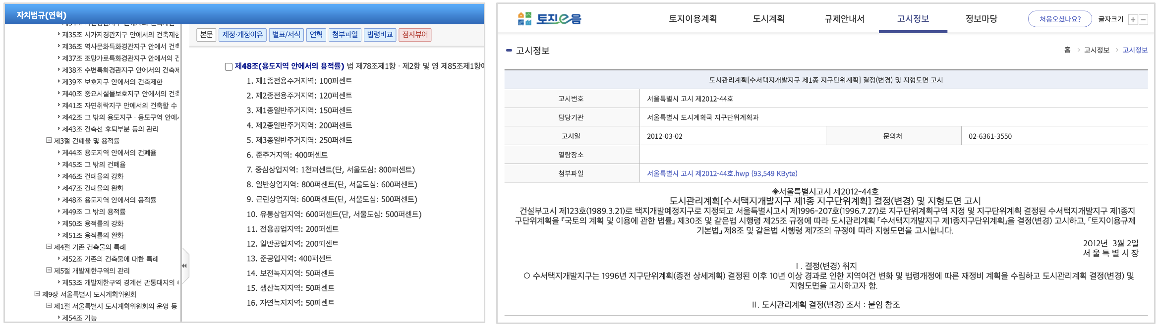 서울도시공간포털에서 고시링크 등 풍부한 정보를 포함하고 있어서, 서울을 따로 구분하여 제공합니다.