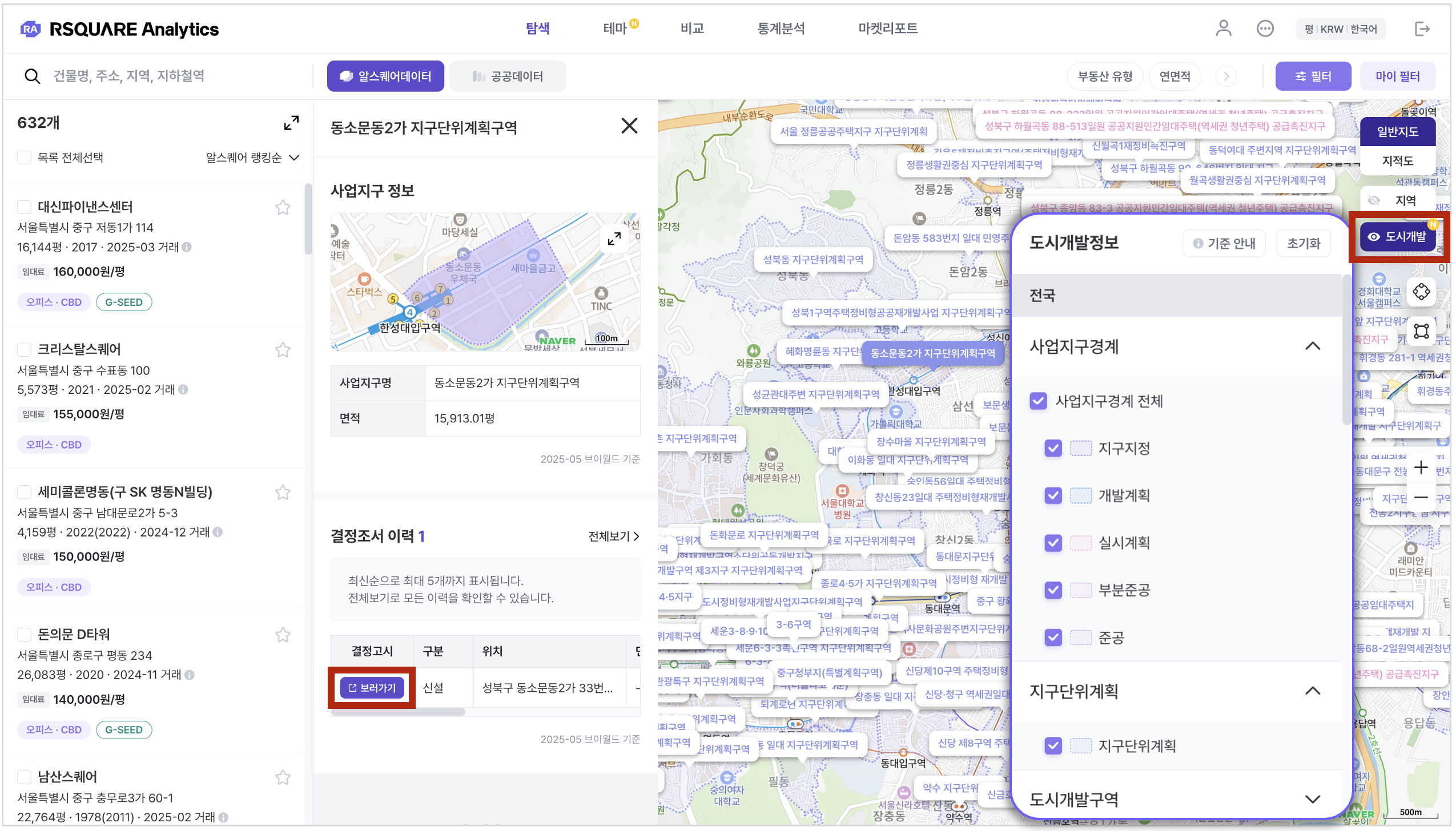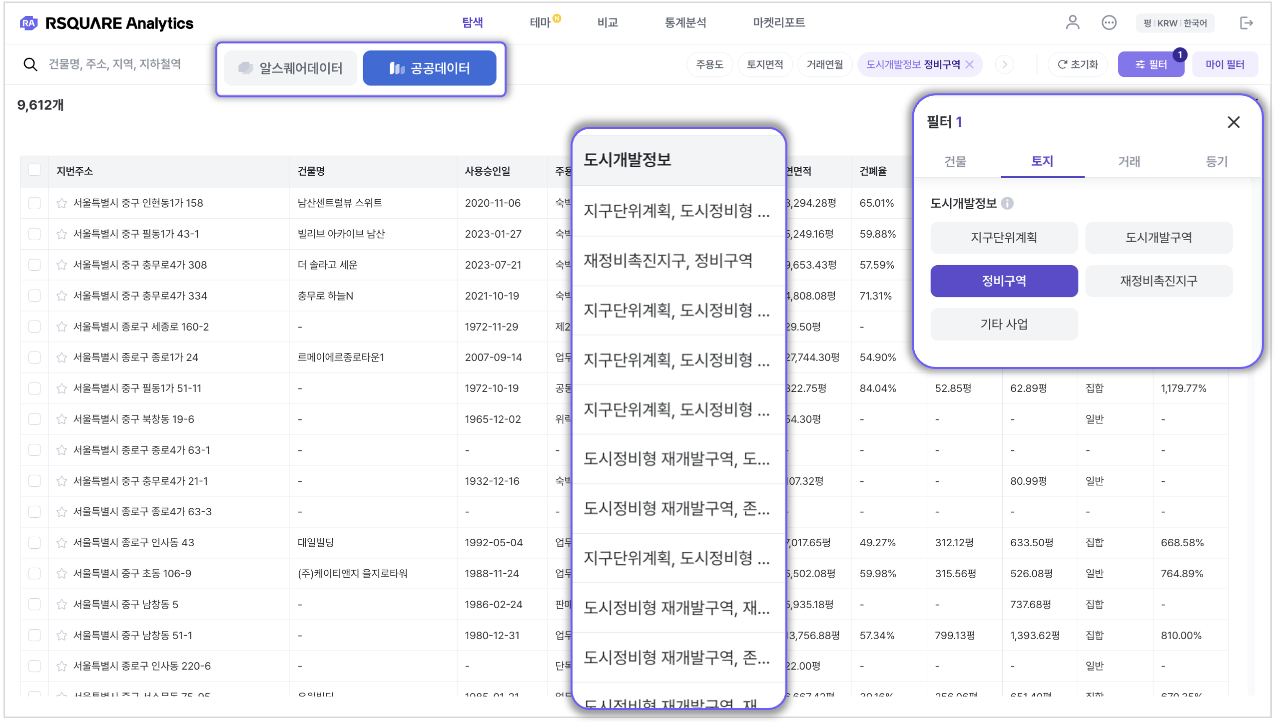 [탐색 > 공공데이터] 화면에서 "도시개발정보" 필터링